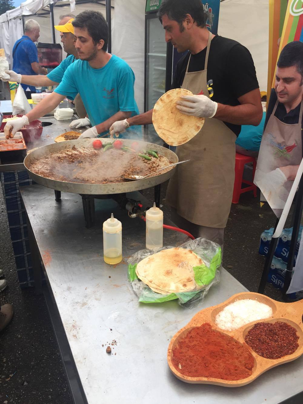 În weekendul care tocmai a trecut clujenii au putut să guste puțin din spiritul turcesc; pe lângă dansuri și muzica tradiționale, gastronomia turcească a fost ca la el acasă. S-a stat inclusiv la coadă pentru bucate; cel mai mult pentru baklava și pentru plăcintele cu brânză (gozleme). Nu a lipsit nici shish kebab-ul (decât cel de miel care cel puțin în Istanbul predomină, comparativ cu cel făcut din pui sau vită) și nici ceaiul și paharele specific turcești în care se servește acesta. În plus, majoritatea celor care pregăteau mâncarea erau îmbrăcați tradițional, ceea ce a dat o notă aparte întregului eveniment.